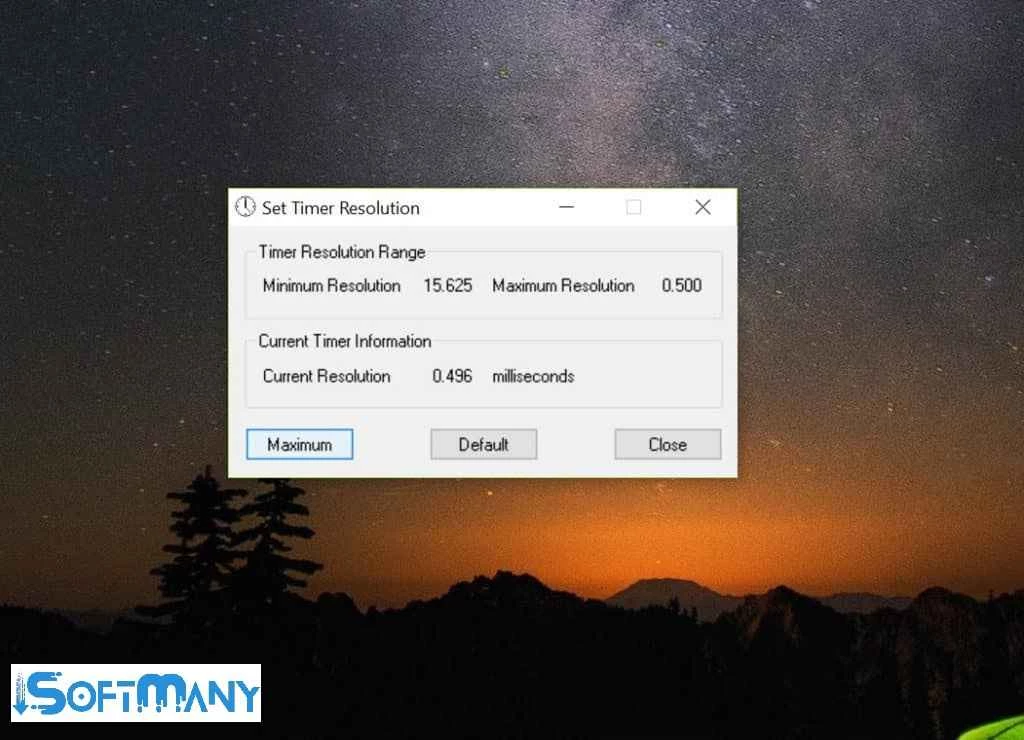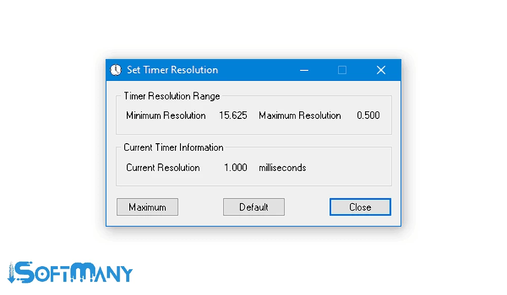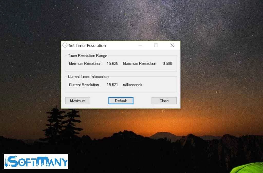 بما أن المؤقت الافتراضي لنظام التشغيل ويندوز يتراوح بين 10 و25 مللي ثانية، وفي حال استخدام كود برمجي بمؤقت وقيمة انتظار أقل من دقة المؤقت في نظامك، فلن تتمكن من الحصول على نتائج دقيقة. لذا، يمكنك تغيير المؤقت بشكل عام داخل التطبيق بسهولة.